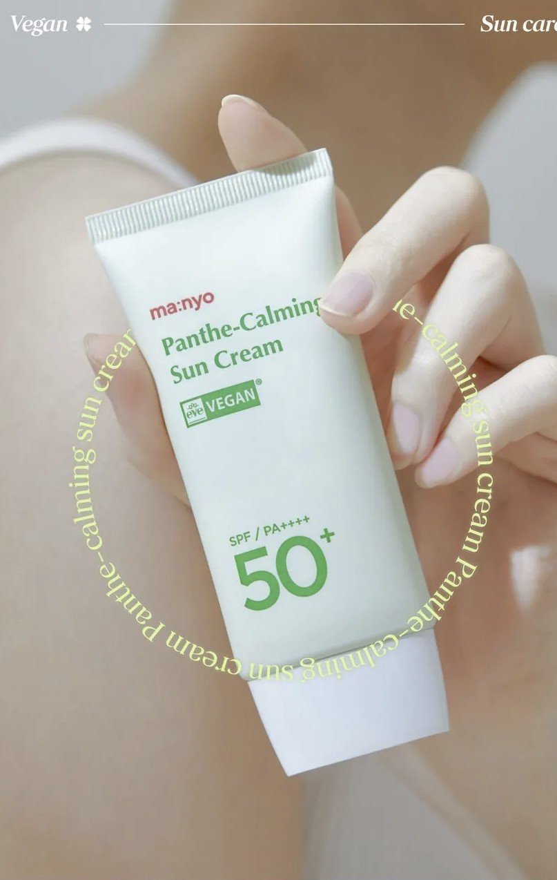 - Kem Chống Nắng Ma:nyo Panthe Calming Sun Cream SPF50+ PA++++ với hệ thống lớp phủ FIne mềm mại nhưng bám chặt vào da của bạn mà không gây khó chịu. Sản phẩm thuần chay được chứng nhận.