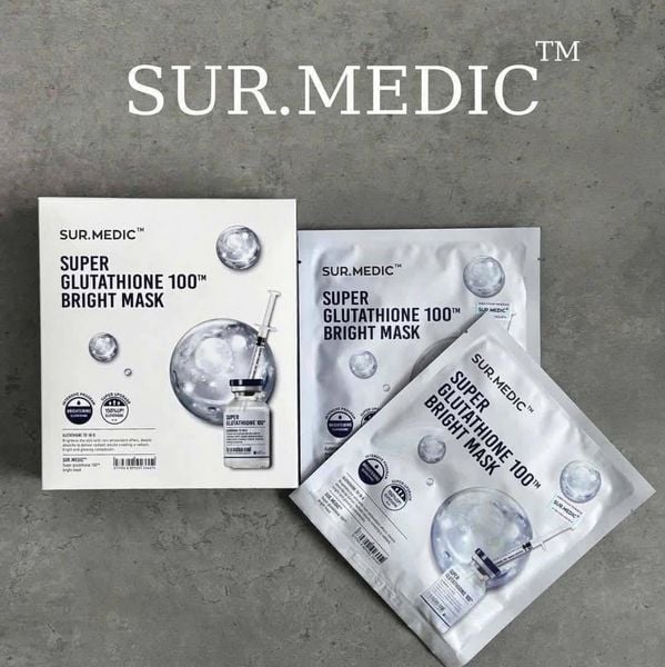 - Mặt nạ Sur. Medic Super Glutathione 100 Bright Mask là sản phẩm được các chuyên gia nghiên cứu có khả năng dưỡng trắng chuyên sâu, nhanh chóng hơn hẳn những sản phẩm khác.
