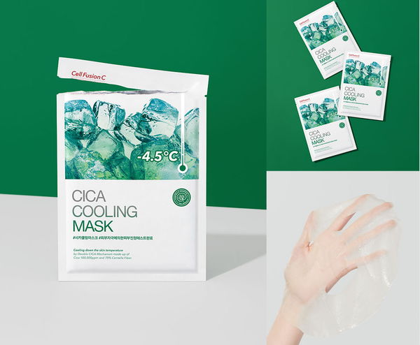 Mặt Nạ Hạ Nhiệt Da Mụn, Nhạy Cảm Cell Fusion C CICA Cooling Mask với công nghệ Cooling Complex kết hợp cùng chiết xuất Centella Asiatica (CICA), sản phẩm mang lại hiệu quả làm dịu tức thì, giảm sưng viêm, kiểm soát dầu thừa và phục hồi da.