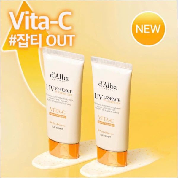 - Kem chống nắng d'Alba VITA-C Sun Cream SPF50+ PA++++ là dòng kem chống nắng thuần chay (Vegan) an toàn cho da nhạy cảm. Đặc biệt, thành phần còn có chứa viên nang vitamin dưỡng da siêu mịn trong kem chống nắng, giàu vitamin C tăng chống oxy hoá cao hơn các dòng còn lại.
