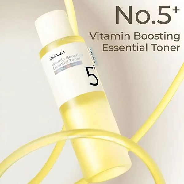 Nước hoa hồng dưỡng sáng, đều màu da Numbuzin No.5+ Vitamin Boosting Essential Toner với công thức giàu dưỡng chất từ Arbutin, Vitamin C, Niacinamide và Glutathione giúp dưỡng ẩm, làm sáng da, giảm thiểu sự hình thành melanin và cải thiện tông màu da hiệu quả.