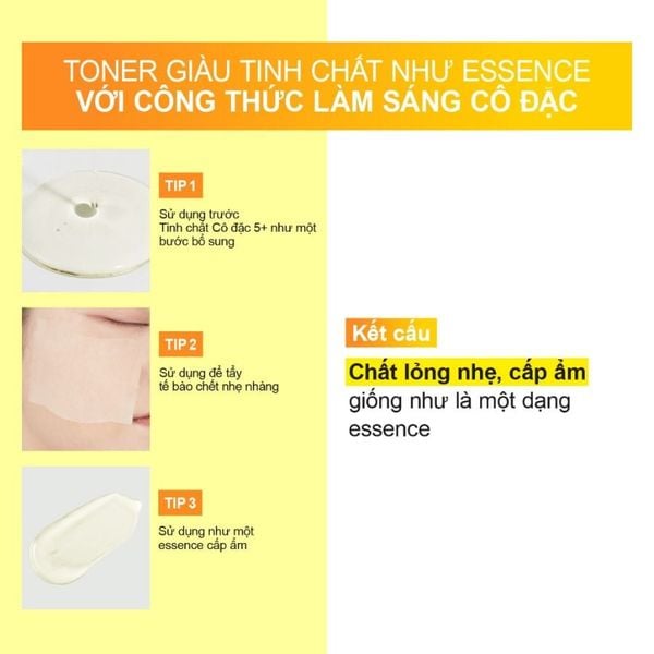 - Kết cấu lỏng nhẹ, thẩm thấu nhanh chóng vào da mà không gây bết dính, mang lại cảm giác tươi mát và thoải mái. Sản phẩm đã hoàn thành kiểm tra kích ứng da, an toàn cho mọi loại da, kể cả da nhạy cảm.