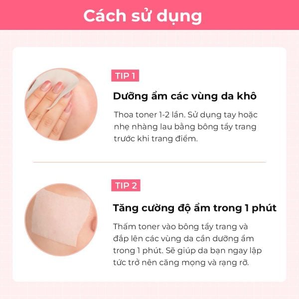 - Sau khi làm sạch da, lấy lượng toner vừa đủ ra bông tẩy trang hoặc lòng bàn tay.