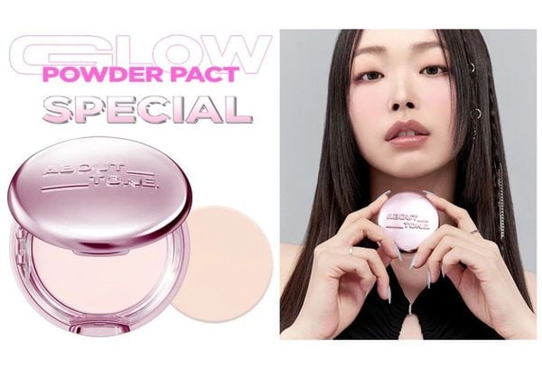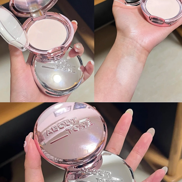 - Phấn Phủ Nén About Tone Glow Powder Pact kiểm soát dầu nhờn, tạo nên 1 lớp nền lì không lo xuống tone. Phấn có nhũ nên tạo hiệu ứng bóng da. Khi apply lên da rất mịn, sáng da, cảm giác nhẹ nhàng và thoáng mát cả ngày.