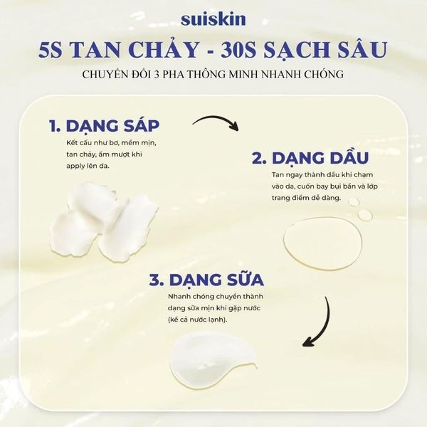 - Kết cấu dạng sáp đặc nhưng dễ dàng tan chảy khi tiếp xúc với nhiệt độ da, sản phẩm nhanh chóng chuyển thành dạng dầu mịn, giúp hòa tan lớp makeup, kem chống nắng, bụi mịn và dầu thừa sâu trong lỗ chân lông. Nhờ đó, da được làm sạch hoàn toàn mà không cần chà xát mạnh, hạn chế tổn thương bề mặt da.